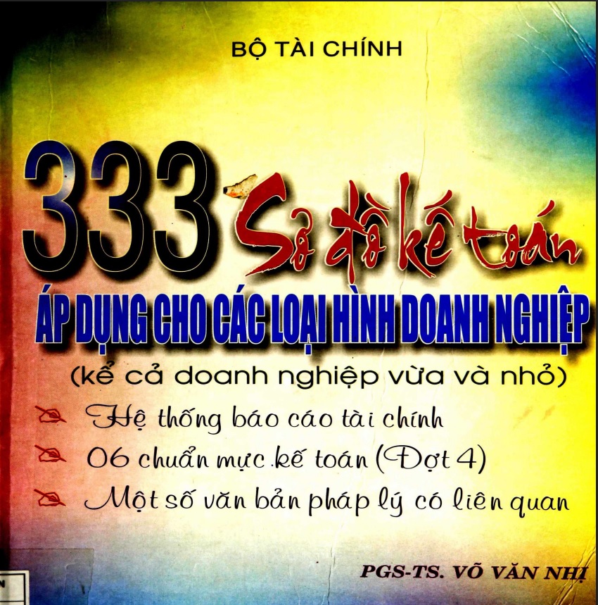 333 sơ đồ kế toán áp dụng cho các loại hình doanh nghiệp. là một tài liệu hướng dẫn thực hành ghi sổ kế toán theo sơ đồ tài khoản chữ T, được biên soạn bởi PGS-TS. Võ Văn Nhị, xuất bản năm 2005.